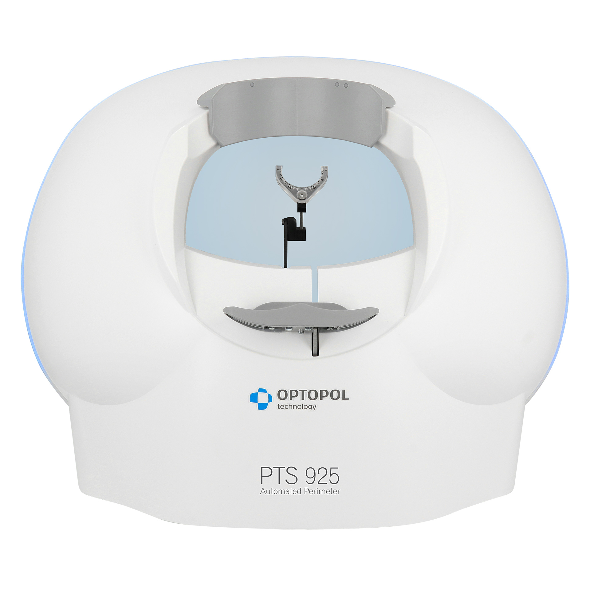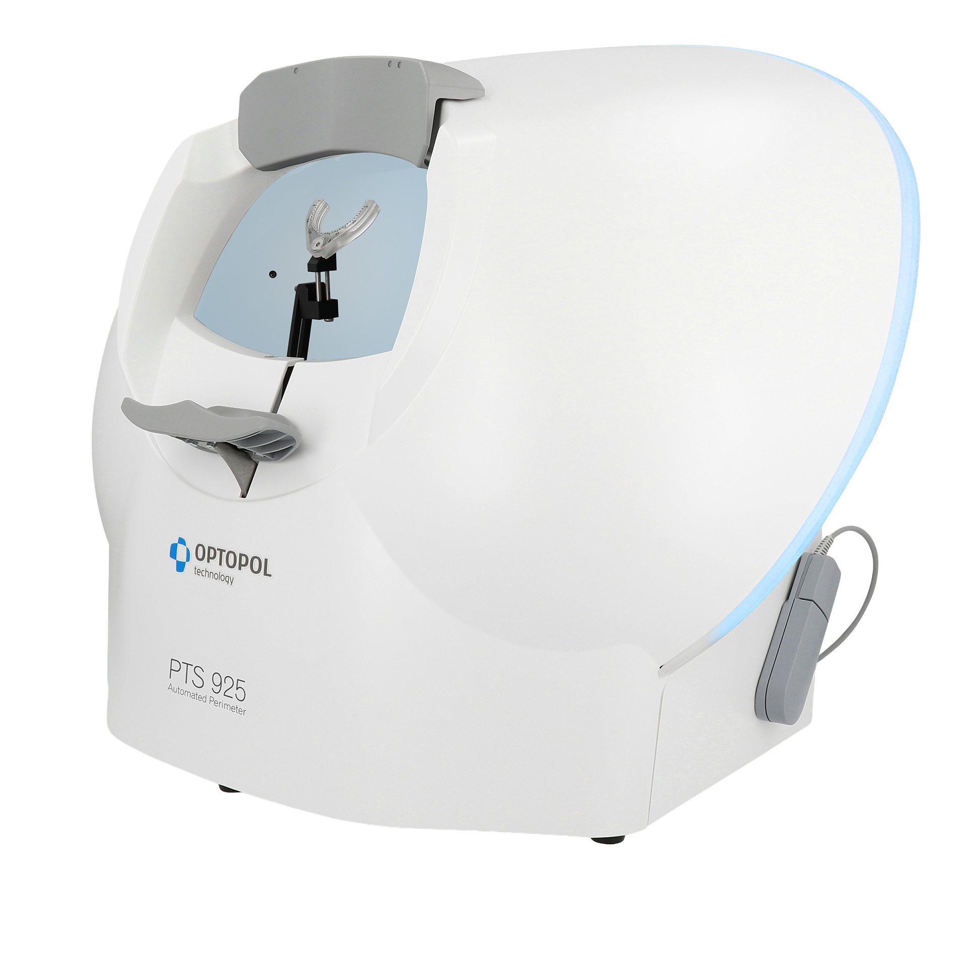BluGlow™ light band provides a minimal ambient light to the darkened testing area, providing the operator and patient with the ability to navigate their surroundings.